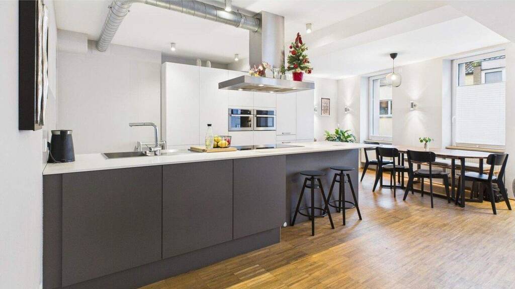 Die gehobene Ausstattung setzt sich in der äußerst hochwertigen Küche fort. Diese ist sehr gut ausgestattet und bietet ausreichend Platz zum Kochen und Verweilen. Drei hervorragend geschnittene Schlafzimmer eröffnen vielfältige Nutzungsmöglichkeiten - ob Familienleben, Homeoffice oder Gästezimmer, hier finden persönliche Bedürfnisse Raum zur Entfaltung.