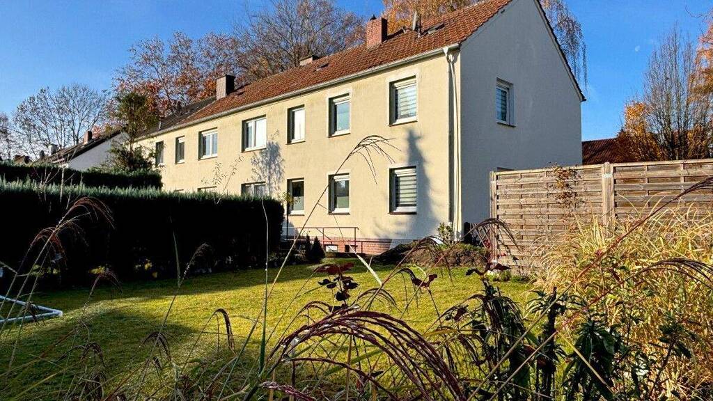 Zum Verkauf steht ein Reihenhaus-Ensemble mit vier Wohneinheiten auf einem insgesamt ca. 1.016 m² großen Erbpacht-Grundstück in ruhiger, gewachsener Wohnlage von Gütersloh. Die Häuser wurden 1950 erbaut und bieten mit ihren durchdachten Grundrissen und eigenen Gärten ein überzeugendes Nutzungskonzept für Familien oder Paare.