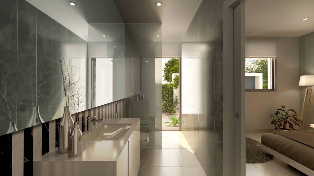 Diese modernen freistehenden Villen mit 4 Schlafzimmern und 4 Badezimmern befinden sich im Altaona Golf and Country Village. Es handelt sich um eine moderne, minimalistisch gestaltete Villa mit geräumigen Zimmern, die auf einer einzigen Etage angelegt sind. Das gesamte Dach dieser Villa ist eine herrliche Sonnenterrasse von fast 145m2. Es bietet einen spektakulären Blick auf den Golfplatz, die umliegenden Berge und die Landschaft. Im Inneren hat die Villa 195m2 Wohnfläche mit Blick auf den privaten Swimmingpool, am Rande des Golfplatzes. Herrlich hohe Decken sorgen für viel Licht und Raum. Das schräge Dach über einem Schiebefenster lässt viel natürliches Licht in das Anwesen fließen. Grundstücksgrößen ab 1000m2.