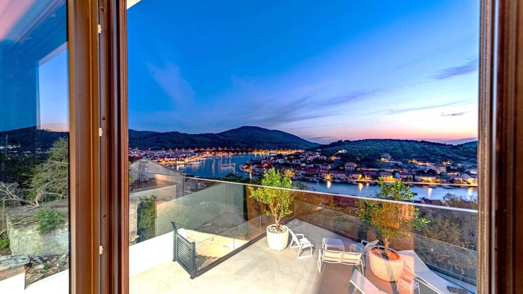 Die moderne Villa erstreckt sich über zwei Etagen und bietet eine Gesamtwohnfläche von rund 120 m². Großzügige Glasfronten eröffnen einen atemberaubenden Blick auf das glitzernde Adriatische Meer und die umliegenden Inseln - ein Anblick, der jeden Tag zum Erlebnis macht.