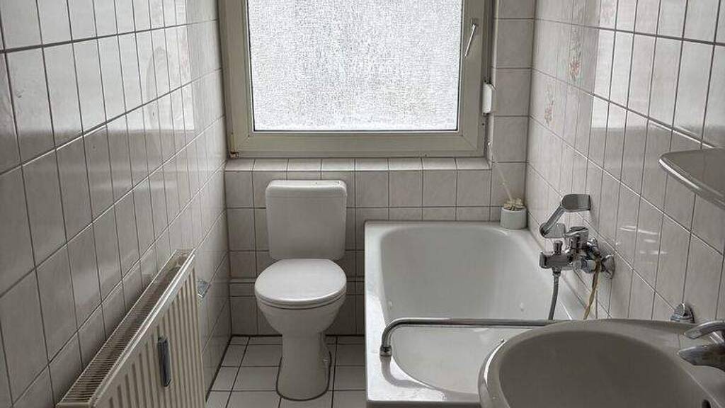Das Badezimmer verfügt über eine Badewanne und ein Fenster. Im Keller des Hauses befindet sich der Waschmaschinenanschluss.