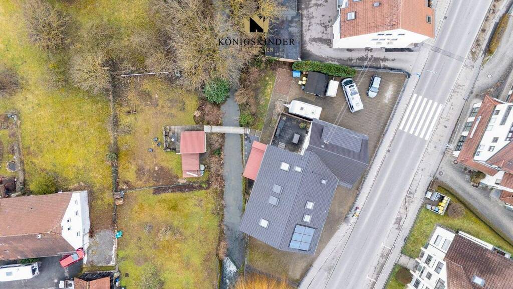 Auf dem 846 m² großen Grundstück verteilen sich rund 310 m² Wohnfläche sowie eine ca. 168,82 m² große Gewerbeeinheit im Erdgeschoss. Das rückwärtige Gartengrundstück mit eigenem Steg und Bachlauf schafft eine nahezu parkähnliche Atmosphäre - ein ruhiger Rückzugsort, der dem Haus eine besondere Qualität verleiht und sowohl für Kinder als auch für entspannte Abende im Freien ideale Voraussetzungen bietet.