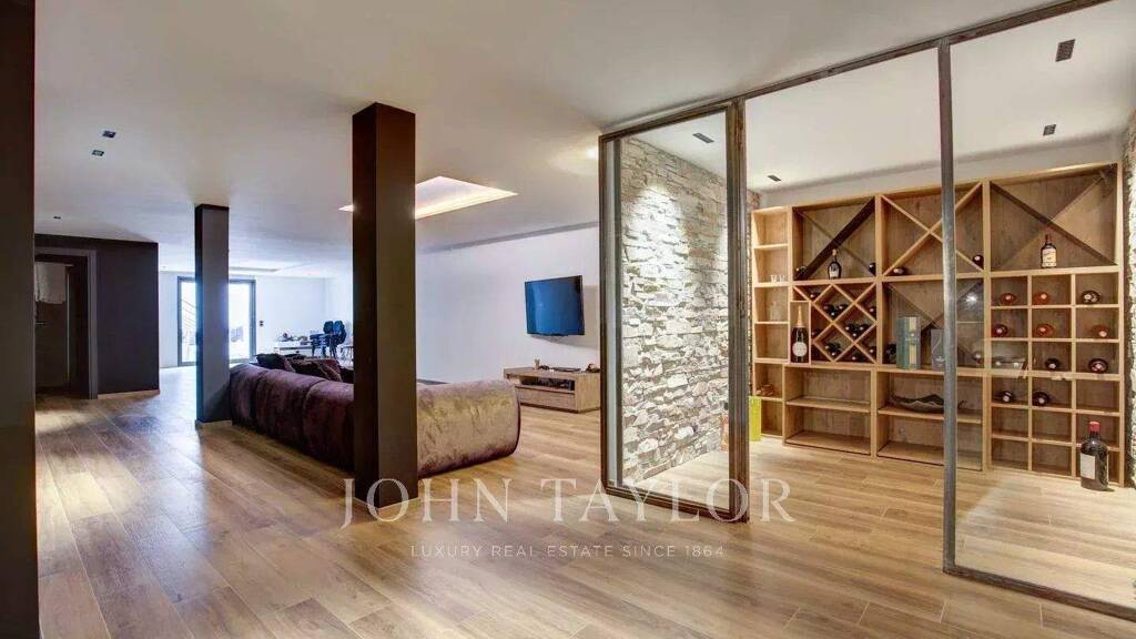 Untergeschoss: Großes Spielzimmer mit Heimkino von 77 m2, ein Weinkeller, eine Sauna, die Waschküche, ein 5. Schlafzimmer mit unabhängigem Zugang nach außen, ein Duschraum mit WC.