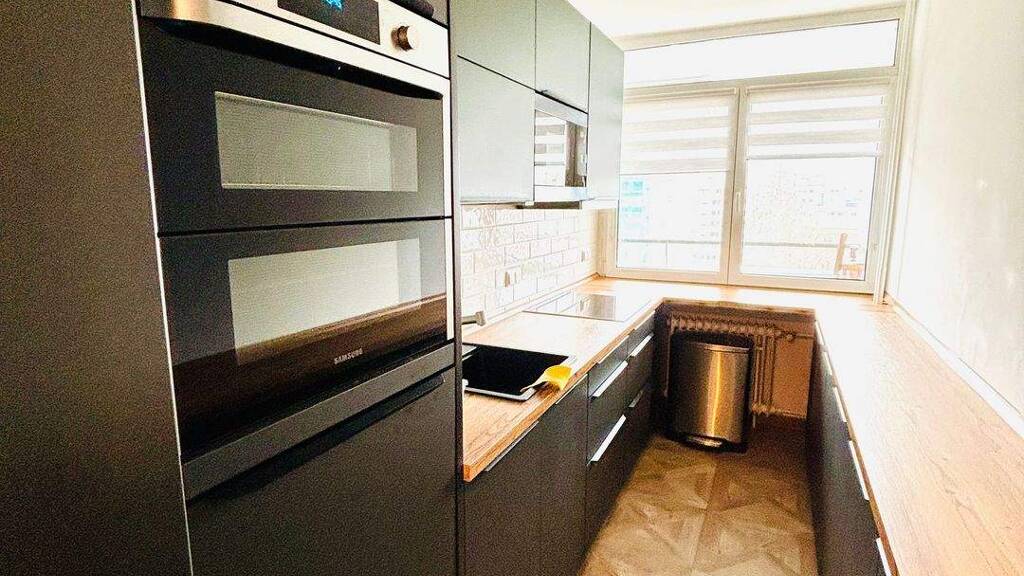 Die untere Ebene beherbergt das Schlafzimmer sowie das Kinderzimmer und bietet damit einen klar getrennten, ruhigen Privatbereich. Im Übergang zur oberen Ebene befinden sich der Eingangsbereich, das Gäste-WC sowie das modernisierte Hauptbadezimmer. In der oberen Ebene bildet der großzügige Wohnbereich den Mittelpunkt der Wohnung. Hier befinden sich die 2021 neu eingebaute Einbauküche mit modern gefliestem Boden sowie das Wohnzimmer mit hochwertigem Parkettboden. Von hier aus besteht Zugang zum Balkon, der zusätzlichen Wohnkomfort bietet.
