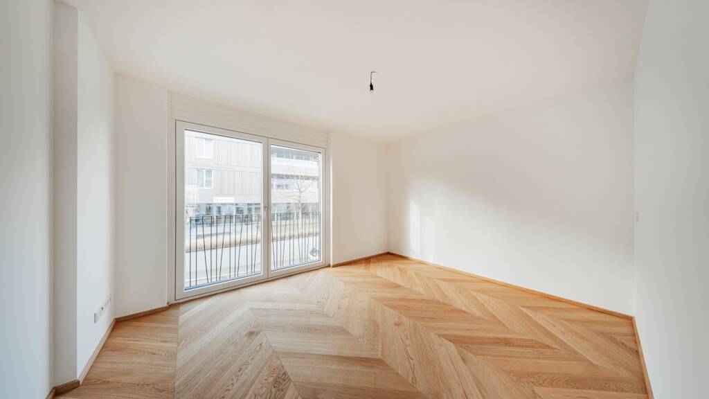Echtholz-Fischgrät-Parkettböden in allen Wohnräumen