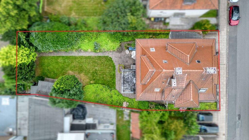 Der großzügige, nach Südosten ausgerichtete Garten bietet viel Platz für Freizeit, Spiel und Erholung. Neben der Terrasse im Erdgeschoss lädt auch ein überdachter Sitzplatz im hinteren Teil des Gartens zum Verweilen ein. Zur Immobilie gehören außerdem eine Garage sowie ein Stellplatz davor.