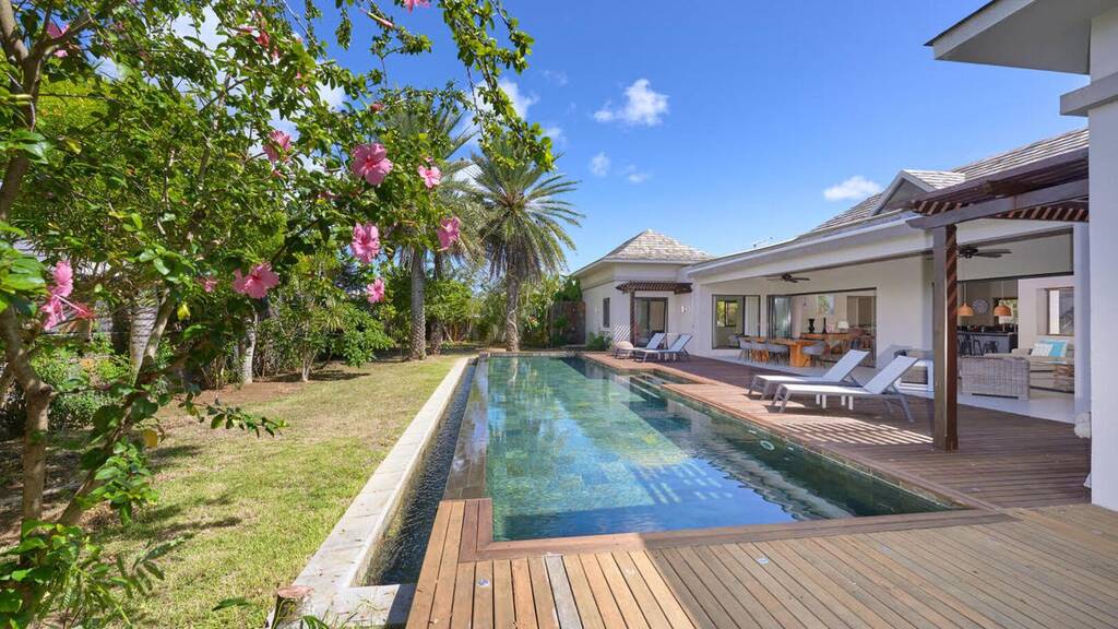 Eingebettet in absolute Privatsphäre in einem sicheren Wohnkomplex mit fünf Villen in Pereybere, verbindet diese Villa geschickt Modernität und Eleganz mit einem Konzept, das sich auf das Leben im Freien konzentriert. Dieses charaktervolle Haus setzt all seinen Charme ein, um dein Herz zu erobern. Ein luxuriöser Schieferpoolbereich bereichert einen perfekt gepflegten Garten, in dem Sie einen Pavillon finden, um Ihre Abende mit Freunden oder Familie zu verbringen. Das geräumige Wohnzimmer mit Kathedralendecke sticht als Juwel dieses Hauses hervor und öffnet sich nach draußen durch Glastüren, die den Raum mit Licht fluten und ein Gefühl von Größe erzeugen. Eine offene Küche, geschickt arrangiert und ausgestattet, erweitert harmonisch den Wohnbereich. Der Schlafbereich verfügt über vier Schlafzimmer, jedes mit eigenem eigenem Bad, darunter eine Master-Suite mit großzügigem Umkleideraum und luxuriösem Badezimmer. Eine Doppelgarage und ein Waschraum vervollständigen dieses prestigeträchtige Anwesen. Diese Villa wird Sie mit ihrer erstklassigen Lage und sorgfältigen Dekoration verzaubern.