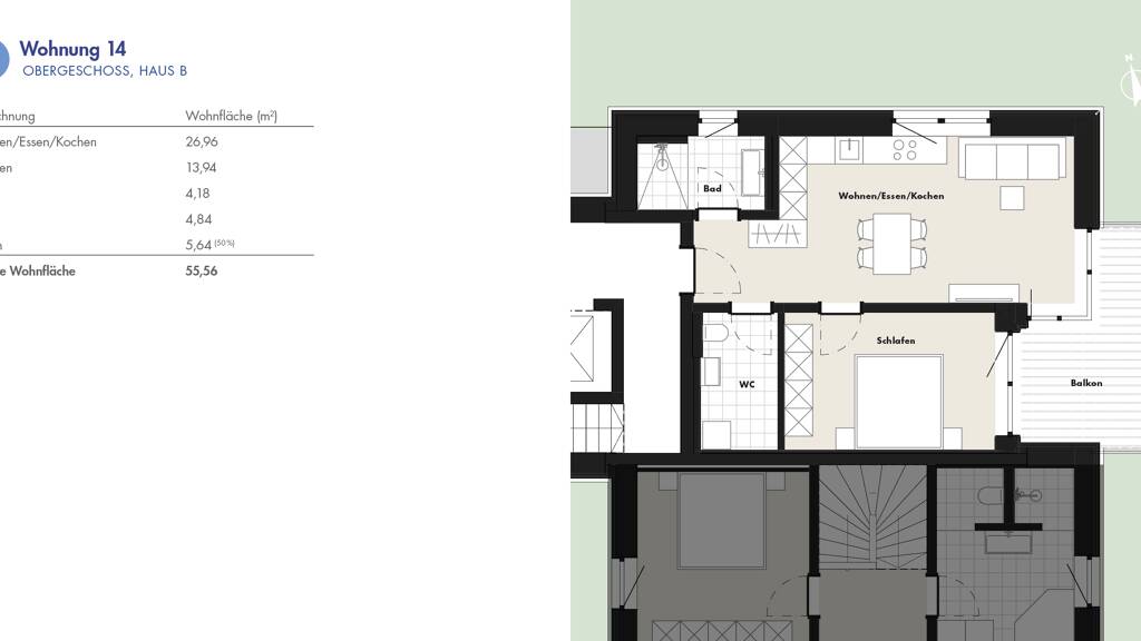2 Zimmer • 55,5 m² • 2. Geschoss