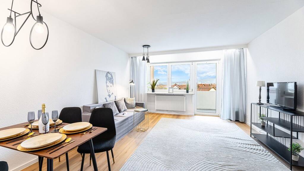 Diese frisch renovierte 3-Zimmer-Wohnung im 4. Obergeschoss überzeugt durch einen durchdachten Grundriss, viel Licht und eine Aussicht, die man nicht jeden Tag bekommt. Herzstück ist das großzügige, helle Wohnzimmer mit Zugang zum Balkon - hier genießen Sie den Blick auf Michaelsberg und Dom.