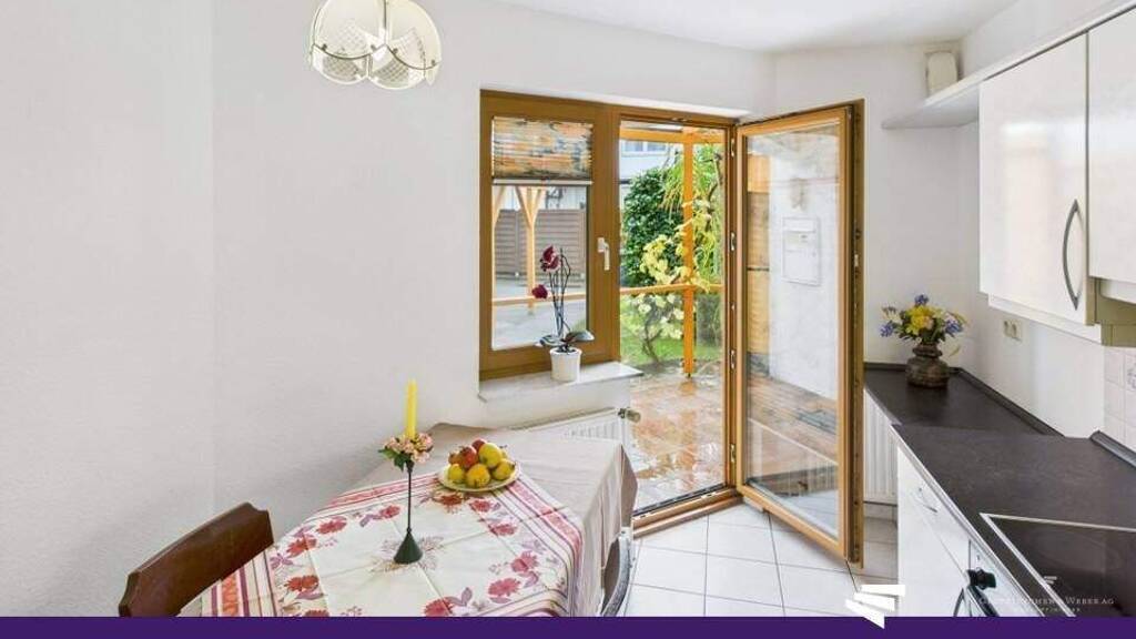 Die Immobilie überzeugt durch ihren durchdachten Grundriss und helle, gut geschnittene Räume. Vom Eingangsbereich oder direkt über die Küche gelangen Sie auf eine kleine, überdachte Veranda, die sich perfekt für das Frühstück im Freien oder einen entspannten Kaffee am Morgen eignet.