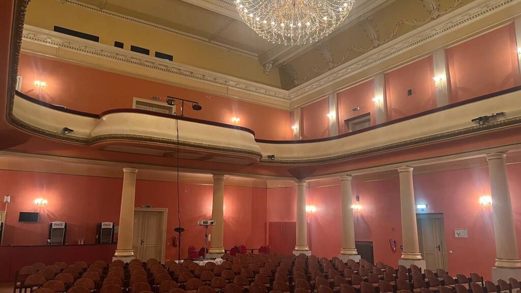 Der prunkvolle Große Saal ist das Herzstück des Forster Hofes. Einst war hier das Stadttheater Forst zu Hause. Der prächtige Festsaal wird inzwischen für Kammerkonzerte, Festveranstaltungen und Vorträge genutzt und wird in diesem Jahr wieder für das Theater erschlossen.