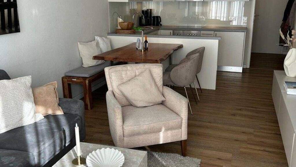 Schon beim Betreten dieser lichtdurchfluteten Wohnung spüren Sie die Urlaubsentspannung. Eine durchdachte Raumaufteilung mit offenem Wohnraum, moderner Küche, zwei separaten Schlafzimmern und elegantem Tageslichtbad schafft eine einladende Atmosphäre. Das Herzstück der Wohnung ist ein Ensemble aus hellem Wohnbereich, großzügigem Essplatz und moderner Küche, das zum gemütlichen Beisammensein und zu gemeinsamen Mahlzeiten einlädt. Die in weißem Design gestaltete Küche ist voll ausgestattet und lässt keine Wünsche offen.