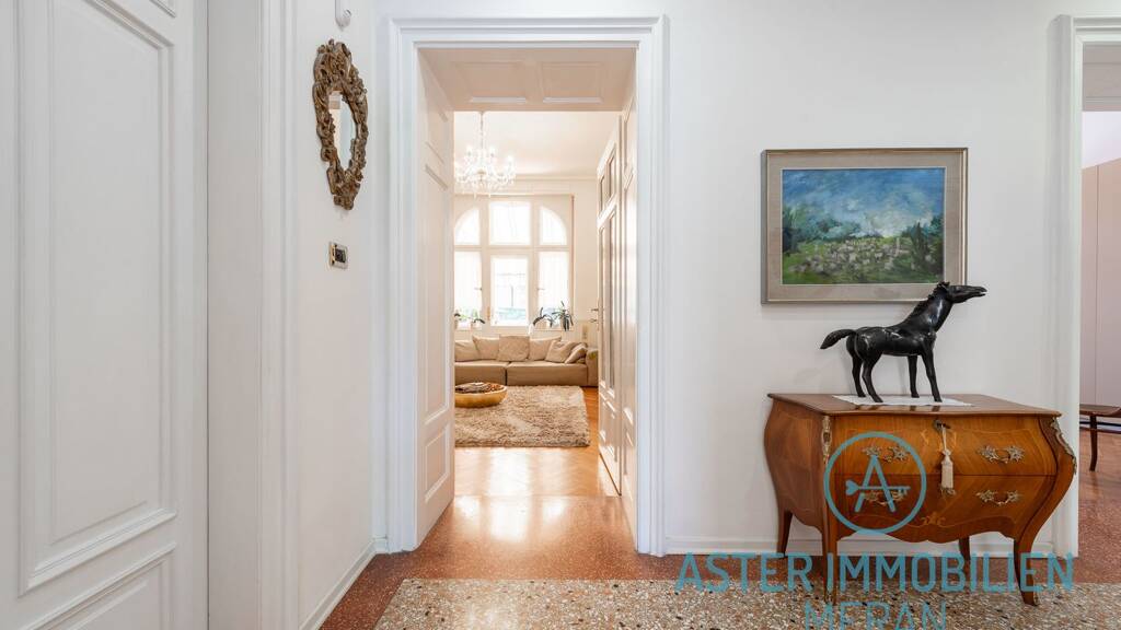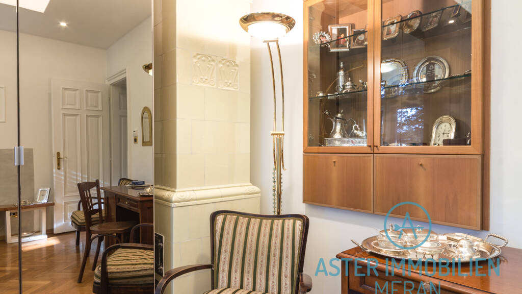 Edler Terrazzoboden im Flur Historisch umgebaute Eingangstür als Sicherheitstür Geschliffene Parkettböden, die den Charme des Altbaus unterstreichen Zwei historische Keller, die zur Immobilie gehören Optional separat zu erwerbende Garage Für weitere Informationen und Kaufanfragen stehen wir Ihnen gerne zur Verfügung. Wenn Sie Fragen haben oder einen Besichtigungstermin vereinbaren möchten, freuen wir uns auf Ihre Kontaktaufnahme.Informationen und Verkauf Aster Immobilien Meran, Frau Irene Aster, Tel: +39 347 175 8896. Die angegebenen Informationen sind Richtlinien und können jederzeit Abänderungen und/oder Korrekturen unterliegen.