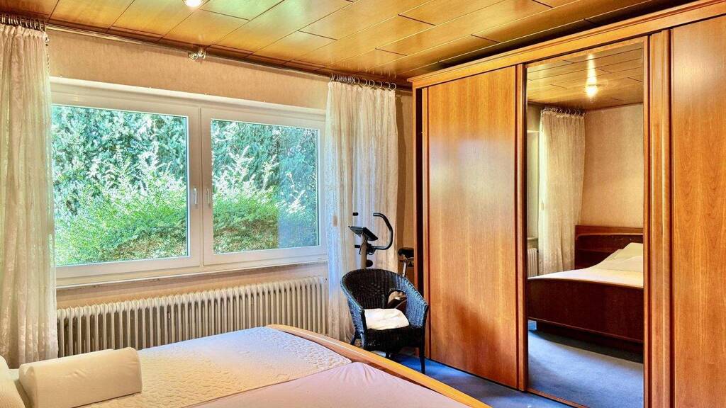 Das Haus verfügt insgesamt über drei Schlafzimmer sowie ein bereits renoviertes Badezimmer und ein separates Gäste-WC. Ein Esszimmer und die angrenzende Küche bilden einen weiteren zentralen Wohnbereich. Auch hier besteht Potenzial: Die Küche könnte bei Bedarf mit dem Esszimmer zusammengelegt oder erweitert werden, um eine moderne, offene Wohnküche zu schaffen. Ergänzt wird das Raumangebot durch einen praktischen Abstellraum.