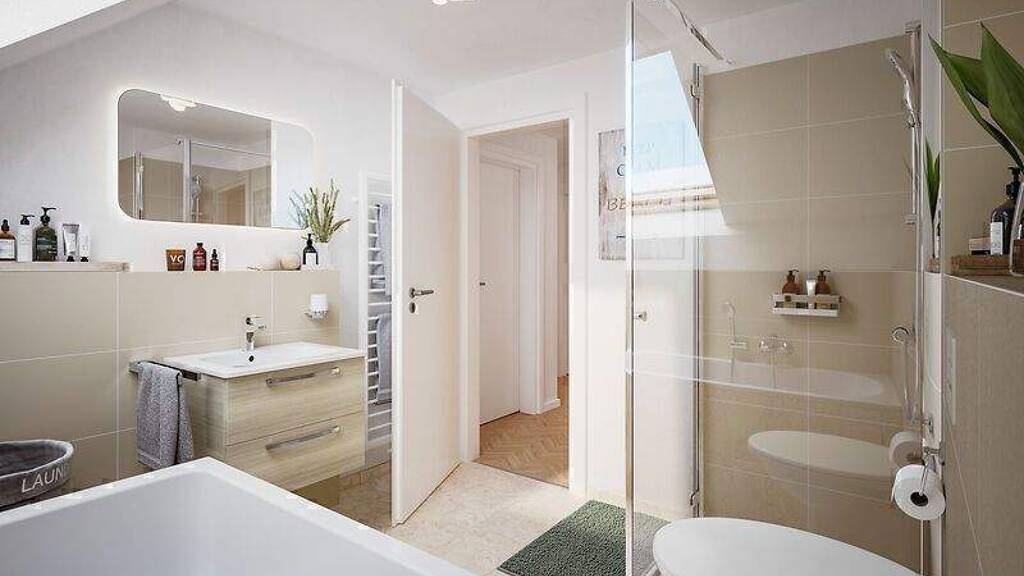 Baugrundstück Effizienzhaus 55 im Standard, Effizienzhaus 40 gegen Aufpreis Bodengrundgutachten, Gründungspolster und Bodenplatte Bauantrag Bauleitung durch erfahrene Bauleiter Massives Mauerwerk aus Porenbetonsteinen Innen- und Außenputz Dachziegel, Farbe wählbar Estrich inkl. Schall- und hochwertiger Wärmedämmung Energieeffiziente Wärmepumpe mit Warmwasserspeicher Fußbodenheizung mit Einzelraumregelung Vorrüstung Photovoltaik Vorrüstung E-Auto Bad gefliest inkl. Sanitäreinrichtung von Markenherstellern 3-fachverglaste Fenster inkl. Rollläden Haustür mit Lichtausschnitt und Edelstahlgriffen Elektroanlage komplett installiert mit Verteilerschrank und Zubehör Innentüren in vielen modernen Dekoren und Beschlägen Massive Echtholztreppe mit Handlauf (nicht bei Bungalows) Kontrolle durch unabhängigen Baugutachter und vieles mehr...