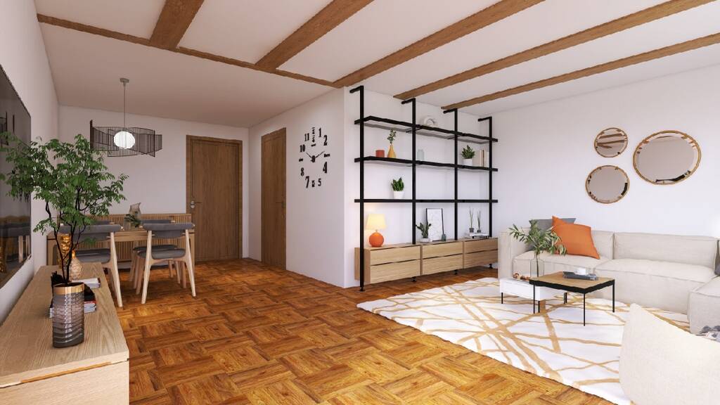 Die sonnige Wohnung erstreckt sich über großzügige 80 Quadratmeter, die intelligent genutzt wurden, um ein geräumiges und komfortables Wohnambiente zu schaffen. Neben dem einladenden Wohn- Esszimmer stehen zwei gemütliche Schlafzimmer zur Verfügung, die genügend Raum für eine Familie oder Paare bieten. Die separate Küche bietet ausreichend Platz zum Kochen, wie auch Raum für Sitzgelegenheiten. Für zusätzliche Bequemlichkeit verfügt die Wohnung über ein Badezimmer sowie ein separats WC, was den täglichen Ablauf erleichtert. Ein praktischer Abstellraum bietet weitere Staumöglichkeit. Das Highlight dieser Wohnung ist zweifellos die großzügige 20 Quadratmeter Terrasse, die einen wunderbaren Blick auf die umliegende Berglandschaft bietet und somit der perfekte Ort ist die Natur zu genießen und gesellige Stunden mit Familie und Freunden zu verbringen.
