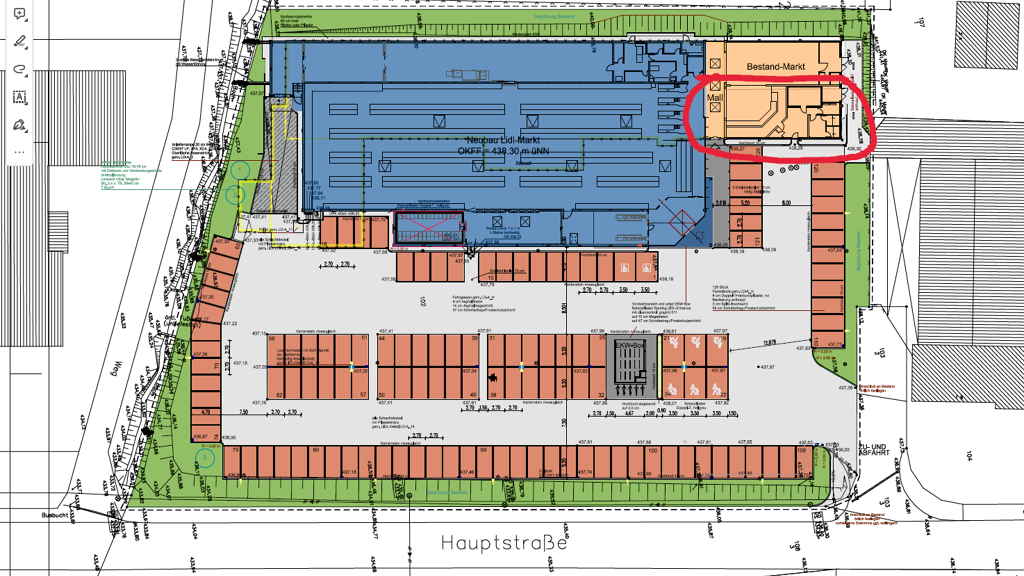 Es gibt 126 Stellplätze, die zur gemeinsamen Nutzung mit dem Lidl-Markt zur Verfügung stehen.