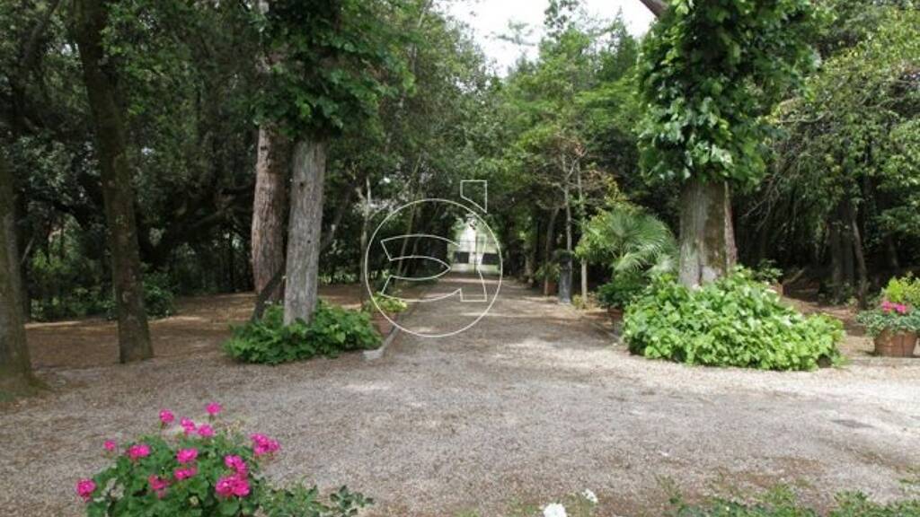 Der Garten mit altem Baumbestand, welcher das Grundstück umgibt, ist komplett eingezäunt mit einem schmiedeeisernem, automatischem Tor und ist mit einer Bewässerungsanlage ausgestattet. Auf den landwirtschaftlichen Flächen des Grundstücks, entlang einer schönen Auffahrt, stehen ca. 40 Olivenbäume.
