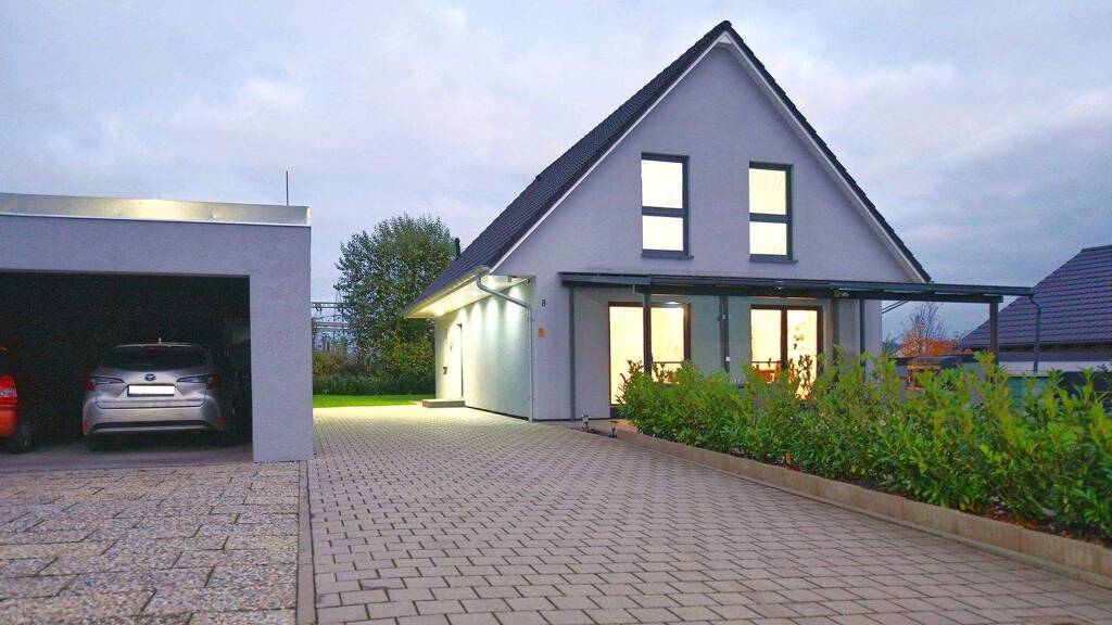 Das sehr moderne Haus wurde 2017 als hochwertiges Fertighaus der Fa. Scan-Haus erstellt. Es bietet neueste Energie- und Wärmetechnik mit zusätzlicher Entkalkungsanlage.
