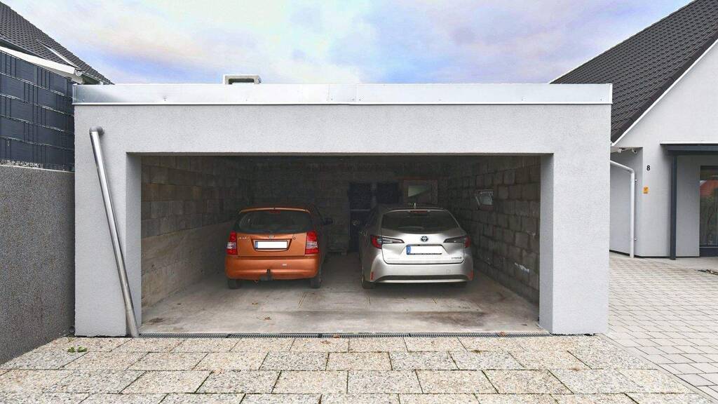 Die große Doppelgarage mit Geräteschuppen wartet nur noch auf Ihre Fahrzeuge. Durch die große Einfahrt und den Platz vor der Garage bringen Sie auch die Autos Ihrer Kinder ohne jedes Problem locker unter...