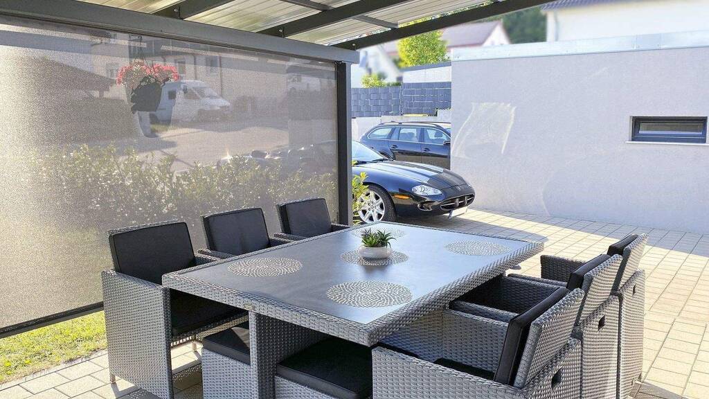 Vom großen Wohn-/Esszimmer aus haben Sie bequemen Zugang zur Terrasse bzw. zum Garten. Die Terrasse wurde vom Eigentümer vor kurzem fest überdacht und lässt sich blickdicht verschliessen. Der Garten ist geebnet, mit Seitenmauer zum Nachbarn versehen und pflegeleicht angelegt: hier ist Platz für alle Outdoor-Aktivitäten.
