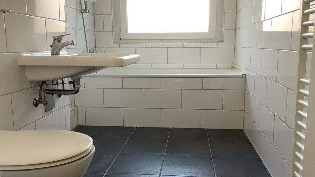 Alle Wände und Decken sind hell gestrichen und es ist überall ein heller und moderner Oberboden ausgelegt. Das neuwertige Tageslichtbad besticht durch seine schwarze Boden- und weiße Wandfliesen. Zudem ist eine Badewanne und ein Waschmaschinenanschluss eingebaut worden.