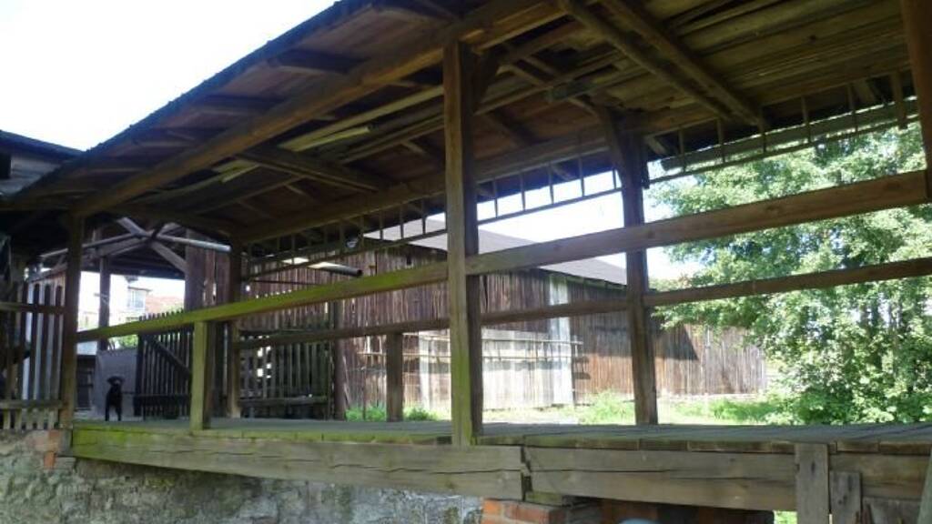 An das Hauptgebäude anschließend findet man eine offene Lagerhalle, weitere Kleingebäude, einen großen Hof (500 m²) und an der Straße ein kleines Gebäude – im Erdgeschoss Garage und Nutzräume, im Obergeschoss Wohnung möglich.