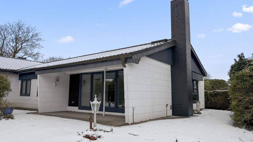 - Der einseitig angebaute Bungalow aus dem Baujahr 1971 präsentiert sich im amerikanischen Stil und befindet sich in ruhiger, grüner Lage von Tangstedt