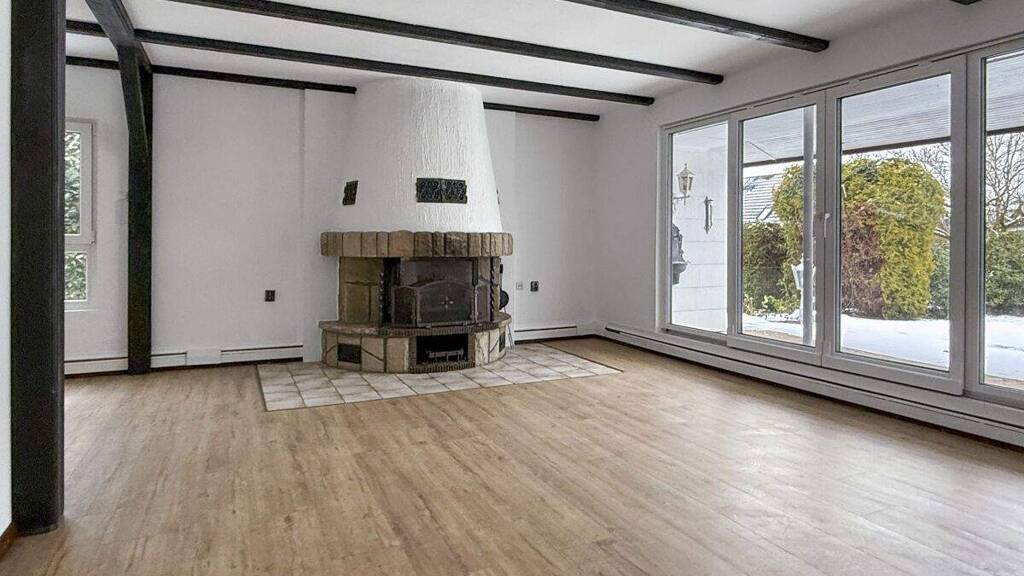 - Der großzügige Wohn- und Essbereich bildet den zentralen Mittelpunkt des Hauses und ist mit einem Kamin ausgestattet