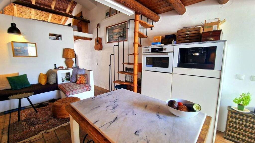 Im Inneren erwartet Sie ein einzigartiges und elegantes Dekor, das sofort eine entspannende und originelle Atmosphäre schafft. Das Haus verfügt derzeit über ein Wohnzimmer, eine Küche, ein Schlafzimmer und ein Badezimmer. Ein cleveres Design-Detail: In den Bereichen von Wohnzimmer und Küche wurde ein Mezzanin (Zwischengeschoss) mit einem Bett eingerichtet, das zusätzlichen flexiblen Raum für Familie und Freunde bietet. Der private und wunderschön gestaltete Innenhof verfügt über eine gut genutzte und dekorierte Terrasse. Dies ist der ideale Rückzugsort für Freizeit, zum Lesen oder um Mahlzeiten zu genießen, während man das wundervolle Ambiente der Umgebung aufsaugt.