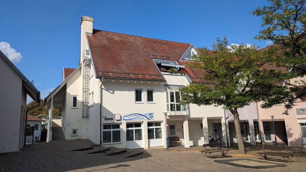 Diese ansprechende Physiotherapiepraxis überzeugt durch ihre zentrale Lage, moderne Ausstattung und eine durchdachte Raumaufteilung. Im Erdgeschoss des gepflegten Wohn- und Geschäftshauses am Brunnenplatz gelegen, bietet sie eine hervorragende Sichtbarkeit und optimale Zugänglichkeit für Patienten und Mitarbeiter. Der großzügige, überdachte Eingangsbereich sorgt für einen repräsentativen Zugang und empfängt die Patienten in einer einladenden Atmosphäre. Der helle und freundlich gestaltete Empfangsbereich schafft einen angenehmen ersten Eindruck und bietet ausreichend Platz für organisatorische Abläufe. Drei großzügig geschnittene Behandlungsräume ermöglichen eine flexible Nutzung. Für das Personal steht ein separater Mitarbeiterbereich mit Teeküche zur Verfügung, der eine komfortable Pausengestaltung ermöglicht. Ein WC mit integrierter Duschmöglichkeit sorgt für zusätzlichen Komfort. Ein zweiter, rückwärtiger Zugang erleichtert Lieferungen oder die private Nutzung durch das Team. Die Praxis befindet sich in einem gepflegten Zustand und bietet optimale Voraussetzungen für physiotherapeutische oder ähnliche therapeutische Anwendungen.