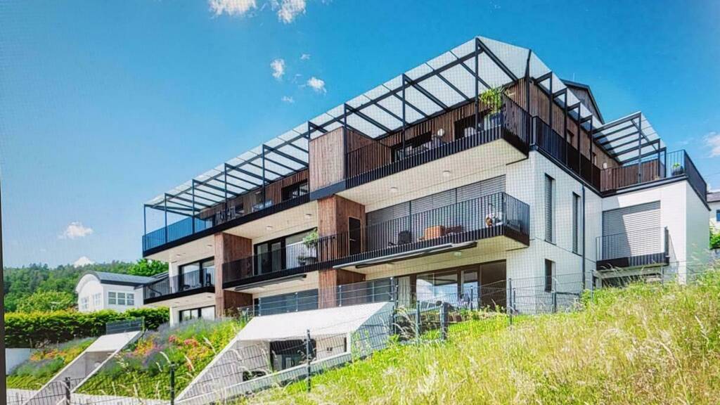 The stylish apartment with a living space of approx. 86 m² is located on the 1st floor of the small complex built in 2020 and is literally enthroned above Lake Wörthersee. It has a spacious and open kitchen, living and dining area with a beautiful balcony and a stunning and sweeping view of Lake Wörthersee and the Karawanken mountains.