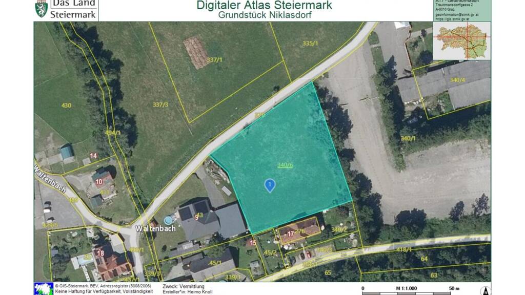 Zum Verkauf steht ein 3.830 m² großes Baugrundstück im Grenzkataster in Waltenbach - Niklasdorf.