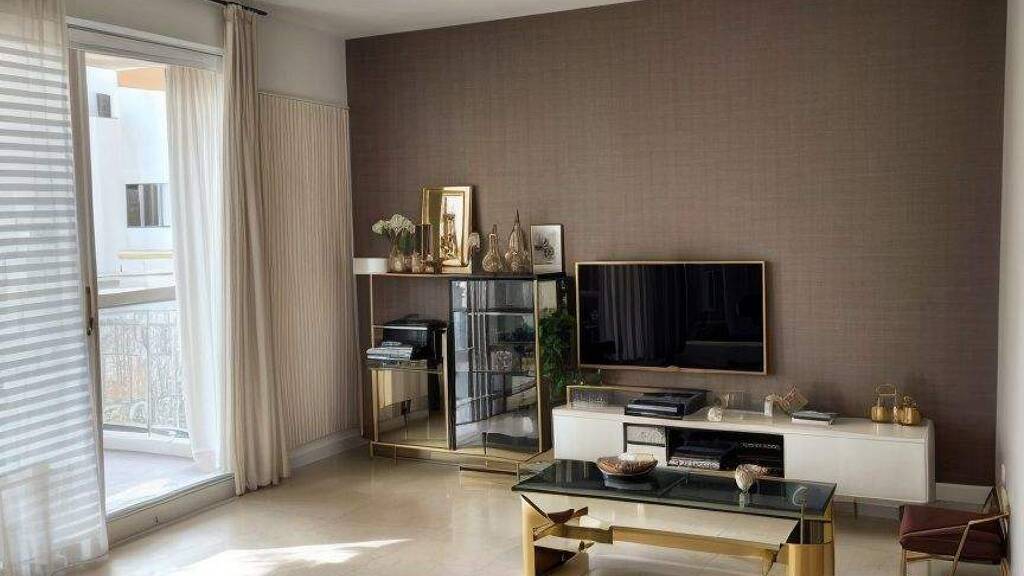Helles Wohnzimmer mit direktem Zugang zu einem 10 m² großen Balkon