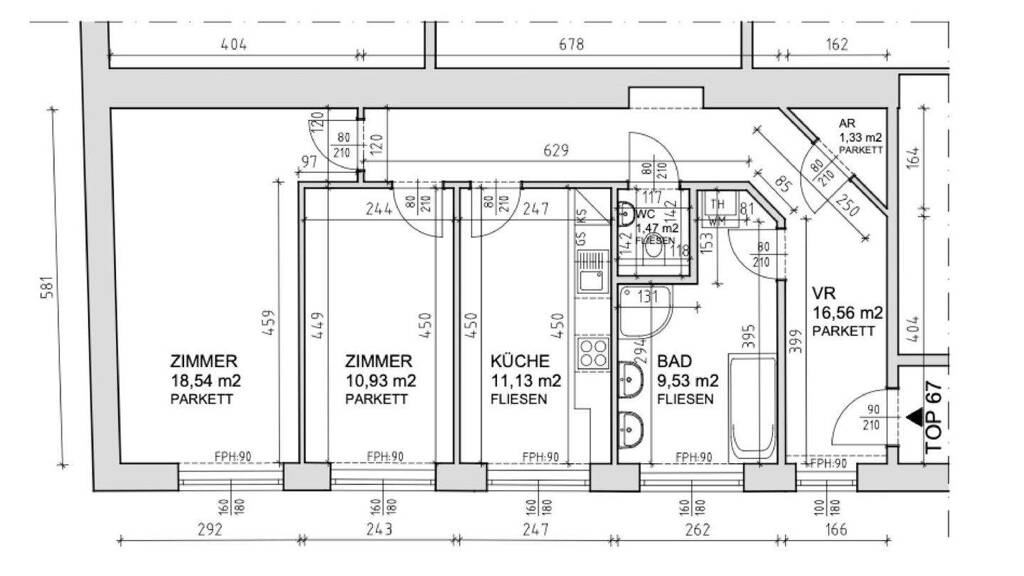 Über den Vorraum bzw. den Flur sind sämtliche Räume separat begehbar. Die Wohnung bietet ein rd. 19 m² Wohnzimmer, ein Schlafzimmer, eine Küche mit ausreichend Platz für einen Essbereich und ein Badezimmer mit Waschmaschinen-Anschluss. Ein separates WC mit Handwaschbecken sowie ein kleiner praktischer Abstellraum ergänzen das Raumangebot optimal.
