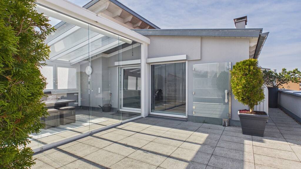 Dieses barrierefreie, gepflegte Penthouse in Rottweil überzeugt mit einem durchdachten Grundriss, viel Licht und außergewöhnlichen Außenflächen. Auf rund 134 m² Wohnfläche plus ca. 58 m² Dachterrasse entsteht ein Wohngefühl, das Raum, Komfort und Alltagstauglichkeit sinnvoll verbindet - ideal für Paare oder Familien. Der großzügige, offen gestaltete Wohn- und Essbereich bildet das Zentrum der Wohnung. Direkt angrenzend: ein lichtdurchfluteter Wintergarten, der sich über moderne Glasschiebetüren vollständig zur weitläufigen Dachterrasse öffnen lässt. So verschmilzt Innen- und Außenbereich zu einem echten Highlight - perfekt für entspannte Abende oder gesellige Runden. Die Küche ist mit einer Einbauküche inklusive Geräten ausgestattet und fügt sich nahtlos in das offene Wohnkonzept ein. Insgesamt stehen 4,5 Zimmer zur Verfügung: ein Hauptschlafzimmer, ein Kinderzimmer sowie ein weiteres flexibel nutzbares Zimmer - ob als Gästebereich, Homeoffice oder Ankleide. Das Badezimmer ist modern ausgestattet mit Dusche, Badewanne, WC und Waschbecken. Ergänzt wird es durch ein separates Gäste-WC, das zusätzlich Platz für Waschmaschine und Trockner bietet. Ein Aufzug bringt Sie bequem bis vor die Wohnungstür. Ein eigener Kellerraum, eine Garage sowie ein Außenstellplatz runden das Gesamtangebot sinnvoll ab. Die Immobilie ist nach Absprache verfügbar.
