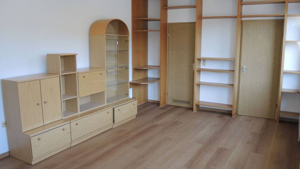 Der Wohnraum ist offen gestaltet und wird als Wohn-, Schlaf- und Arbeitsbereich genutzt. Der moderne neu verlegte pflegeleichten Vinylboden sorgt für eine angenehme, helle Wohnatmosphäre. Zwei vorhandene Schränke können bei Bedarf kostenlos übernommen werden.
