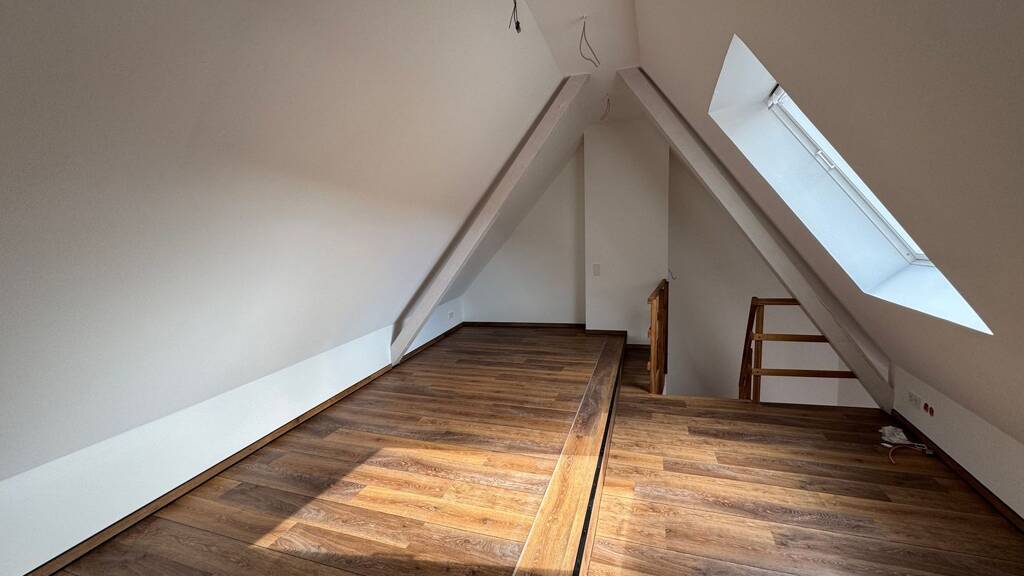 Vom separaten Eingang gelangt man in den Flur, von dem aus links sich das Wannenbad mit Fenster befindet. Rechts gelangt man in zwei weitere Zimmer, gut als Kinder-, Arbeits- oder Hobbyzimmer geeignet - mit Balkon. Vom Flur führt eine Wendeltreppe zum Obergeschoss. Dort befindet sich ein Raum mit angrenzendem Abstellraum (spitzwinkligem Dachgeschoss), der sich gut als Schlafzimmer eignet. Vor dem Eingang im EG befindet sich ein Parkplatz mit Ladesäule. Außerdem lädt nach betreten des Vorgartens eine Fläche zum installieren einer Sitzgelegenheit im grünen ein. In der subterranen Etage befindet sich ein großer Wohn-und Essbereich mit Außenfläche. Ein Kamin mit integrierter Zugluftansaugung und eine hochwertige Einbauküche runden die Einrichtung ab. Bodentiefe Fenster spenden viel Licht und gewähren einen schönen Blick in den idyllischen Innenhof. Im Innenhof steht eine weitere Außenfläche zur freien Nutzung, z.B. stellen einer Sitzgelegenheit, bereit. Im Flur zum Wohnbereich sind links ein Gäste-WC sowie eine Abstellkammer.