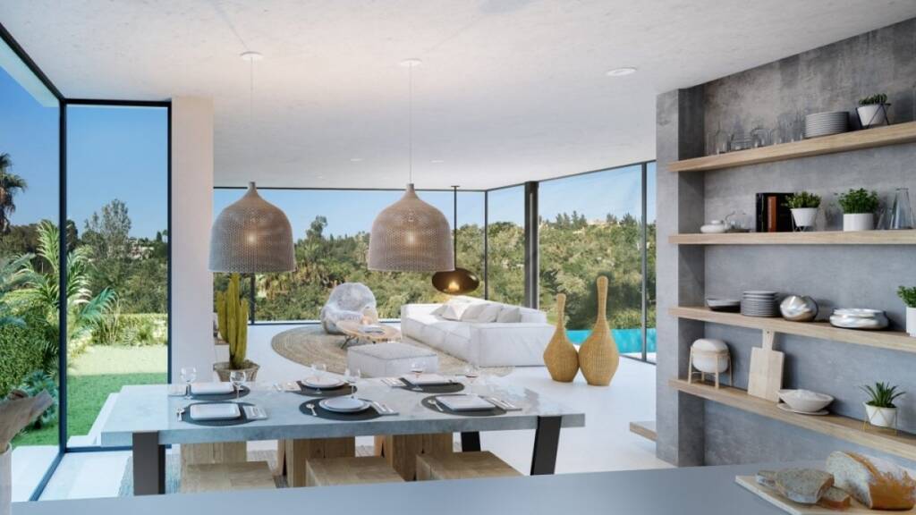 Erleben Sie 6 herausragende Villen mit spektakulärem Blick auf den Golfplatz, die durch erstklassige Materialien und exquisite Gestaltung bestechen. Diese hochwertige Wohnanlage an der Costa del Sol ist ein wahres Meisterwerk der Immobilienarchitektur. Die Residenzen erstrecken sich über drei Ebenen: ein großzügiges Erdgeschoss, ein elegantes Obergeschoss und ein lichtdurchflutetes Untergeschoss, das mit einem beeindruckenden Kinoraum, einem modernen Fitnessbereich, einer Sauna sowie einem erholsamen Wellnessbereich ausgestattet ist. Hier gelangen Sie zu einem stilvollen japanischen Garten mit einem atemberaubenden Pool, der eine Oase der Ruhe bietet. Mit insgesamt 4 Schlafzimmern und 5 luxuriösen Badezimmern sind diese exklusiven Immobilien ein Paradies für anspruchsvolle Käufer. Im Obergeschoss erwarten Sie zwei Schlafzimmer mit separaten Badezimmern, während das Erdgeschoss ein weiteres Schlafzimmer und das Untergeschoss ein zusätzliches Zimmer mit Bad bietet. Die offenen Grundrisse und großflächigen Fenster im minimalistischen Design schaffen ein lichtdurchflutetes Ambiente und fördern eine harmonische Verbindung zur umgebenden Natur. Die Villen befinden sich in der angesehenen Lage "El Campanario", nur wenige Schritte von einem erstklassigen Clubhaus mit feinem Restaurant, Tennis- und Paddelplätzen sowie einem Spa und Golfplatz entfernt. International renommierte Schulen, exquisite Restaurants und traumhafte Strände wie Puro Beach und Salduna sind ebenfalls in unmittelbarer Nähe. Der Flughafen Málaga gelangt in nur 30 Minuten und bietet eine hervorragende Anbindung. Lassen Sie sich von uns zu Ihrem Traumobjekt in Spanien führen - Ihr kompetenter Immobilienpartner in Marbella.