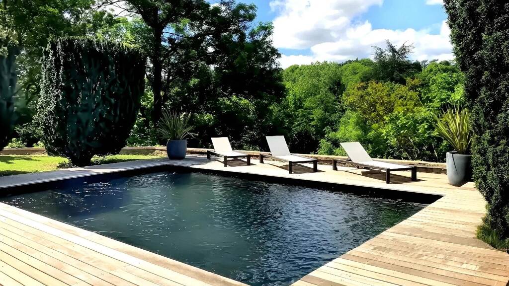 Step down from the main level into a magnificent 90 m2 orangerie-a luminous sanctuary ideal for year-round enjoyment. This elegant space flows seamlessly onto the sun-drenched terrace, heated swimming pool, petanque court, and a beautifully maintained west-facing garden with open views. The orangerie also houses one of the property's two authentic wells, supporting eco-conscious irrigation.