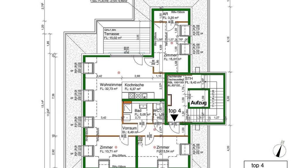 TOP T4.4: ca. 98 m² (4 Zimmer) Terrasse ca. 15,02 m² - Dachgeschoss