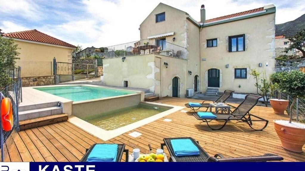 Erleben Sie den Inbegriff von Luxus und Ruhe in dieser atemberaubend renovierten traditionellen Steinvilla mit 5 Schlafzimmern und 4 Bädern. Vor der Kulisse eines atemberaubenden Panoramablicks auf das Meer und die Berge bietet dieses bemerkenswerte Anwesen einen wahrhaft idyllischen Rückzugsort.