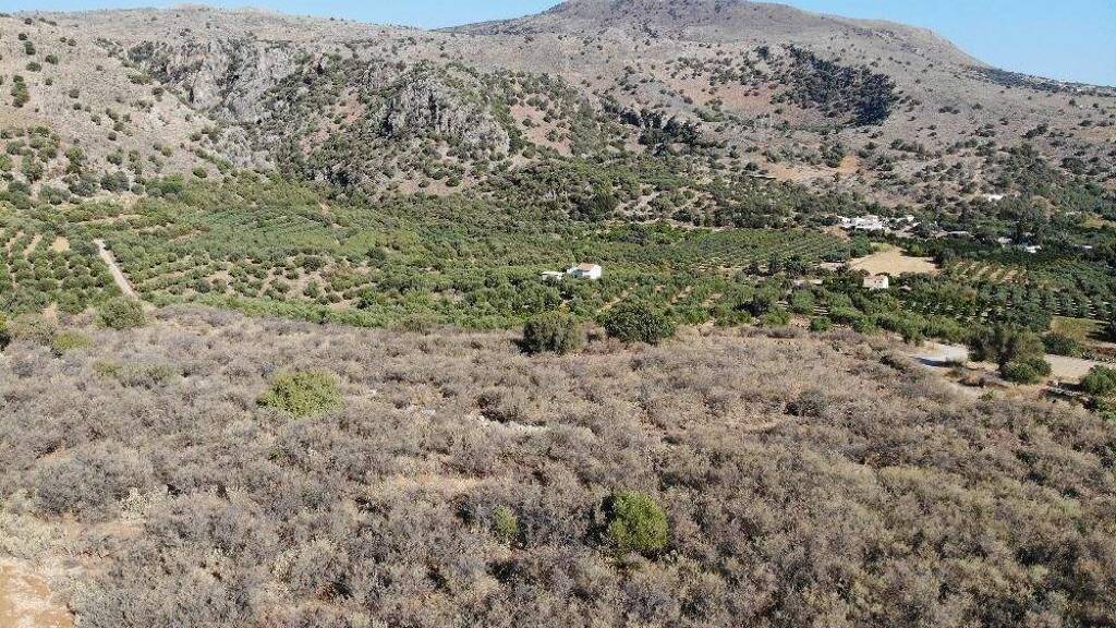 Dank seiner erhöhten Lage bietet das Grundstück atemberaubende Panoramablicke auf das Meer und die Weißen Berge und schafft so eine Atmosphäre der Ruhe und natürlichen Harmonie. Stellen Sie sich vor, jeden Tag im goldenen Sonnenlicht zu erwachen, das sich im Meer spiegelt, und Abende zu verbringen, die von einer sanften Bergbrise und den friedlichen Sonnenuntergängen Kretas erfüllt sind.