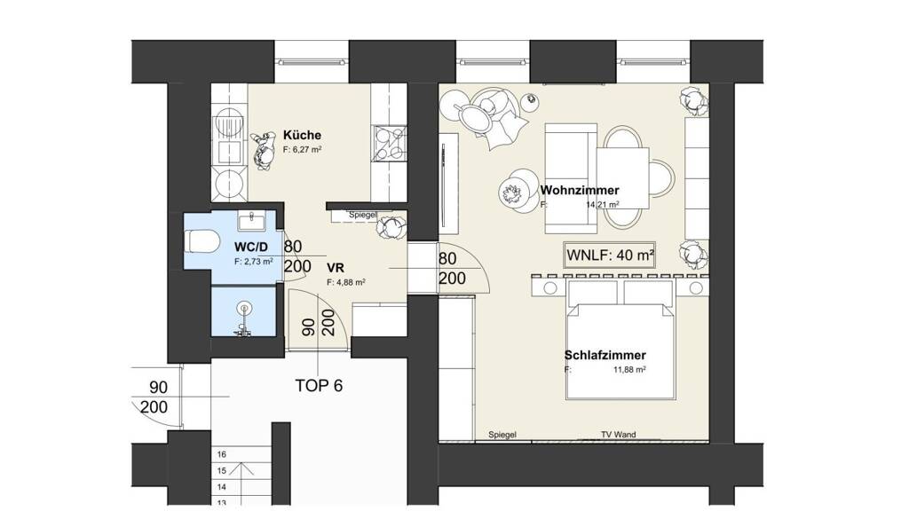 Die Wohnung ist aktuell bis Sommer 2026 befristet vermietet. Der Netto Mietzins beträgt 425€ + Ust = 42,50€. Betriebskosten 105€ + Ust = 21€. Gesamte Miete: 593,50€