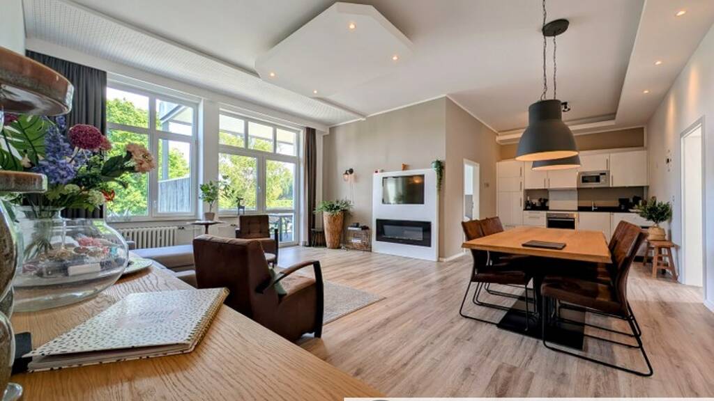 Eine Vollständige Renovierung im Jahr 2019 verleiht der Wohnung einen modernen, zeitlosen Charakter. Besonders hervorzuheben sind die stilvoll integrierten Deckenleisten mit eingebauten Beleuchten, die für eine elegante Lichtführung sorgen, sowie ein elektrischer Design-Kamin, der ein angenehm warmes Ambiente schafft - perfekt für gemütliche Abende.
