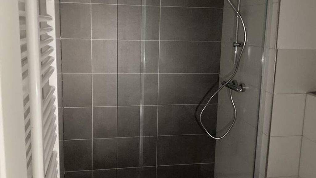 - weiĂź gefliestes Bad mit Dusche - neue weiĂźe InnentĂĽren