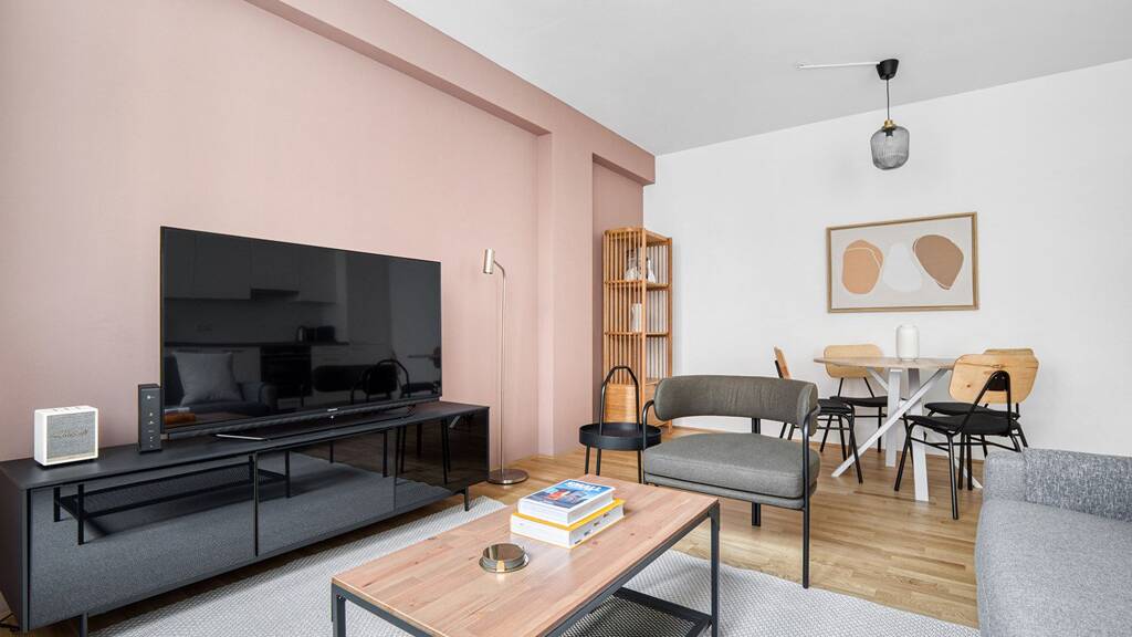 Wunderschöne Möbel, eine voll ausgestattete Küche, ein Smart-TV und ein kabelloser Premium-Lautsprecher sind nur einige der Annehmlichkeiten, die Sie in diesem Apartment mit zwei Schlafzimmern finden werden. Dank der idealen Lage in Wien gibt es auch draußen viel zu erleben. Wenn Sie bereit sind, sich zu entspannen, werden Sie sich freuen, dass jedes Schlafzimmer mit hochwertigen Matratzen, luxuriöser Bettwäsche und kuscheligen Handtüchern ausgestattet ist. Wir kümmern uns um alles, damit Sie einfach ankommen und anfangen können zu leben. Dieses Apartment bietet auch eine eigene Wäscherei.