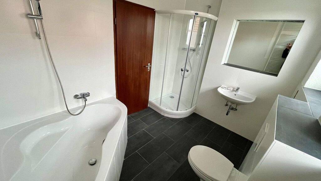 Im ersten Obergeschoss stehen Ihnen zudem zwei große Schlafzimmer zur Verfügung. Das Bad ist für Sie in 2024 komplett modernisiert und sowohl mit Dusche als auch Badewanne ausgestattet. Im gesamten ersten Obergeschoss, mit Ausnahme von Küche und Bad, ist ein hochwertiger und pflegeleichter Teppichboden verlegt.