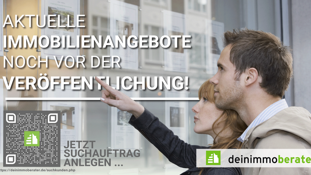 Dieses Objekt passt nicht zu Ihren Vorstellungen? Um neue Immobilienangebote noch vor deren Internetveröffentlichung zu erhalten, können Sie Ihr persönliches Suchprofil auf unserer Homepage hinterlegen: https://deinimmoberater.de/suchkunden.html