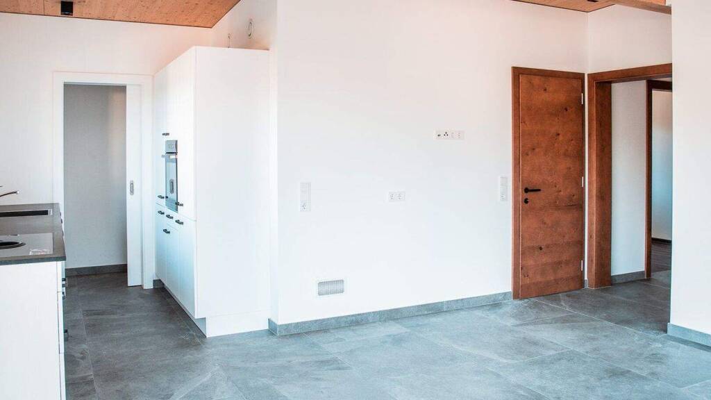 Über die Eingangstür gelangt man in die Garderobe, von der aus das Gäste-WC und der offen gestaltete Wohn- und Essbereich zugänglich sind. Die neuwertige Einbauküche mit integrierter Speis erleichtert das Einziehen und Kochen. Große Hebe-Schiebe-Elemente öffnen den Wohnraum zur herrlichen Dachterrasse (ca. 47 m2) in Westausrichtung. Der perfekte Ort, um den Sonnenuntergang über dem Tal zu genießen.